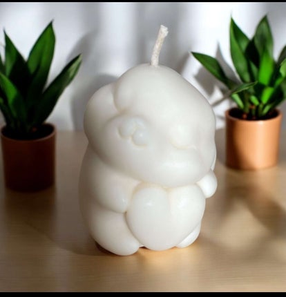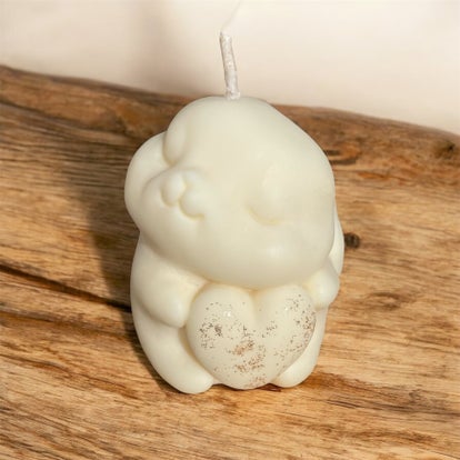 Le lapin est souvent compagnon de tendresse. D'un blanc pur qui donne envie de le câliner il tient en dans ses pattes son cœur qui a été irisé à la main. Hypoallergénique et non toxique. Il trouvera une place dans votre intérieur. 26 heures environ de combustion selon les conditions d'utilisation.