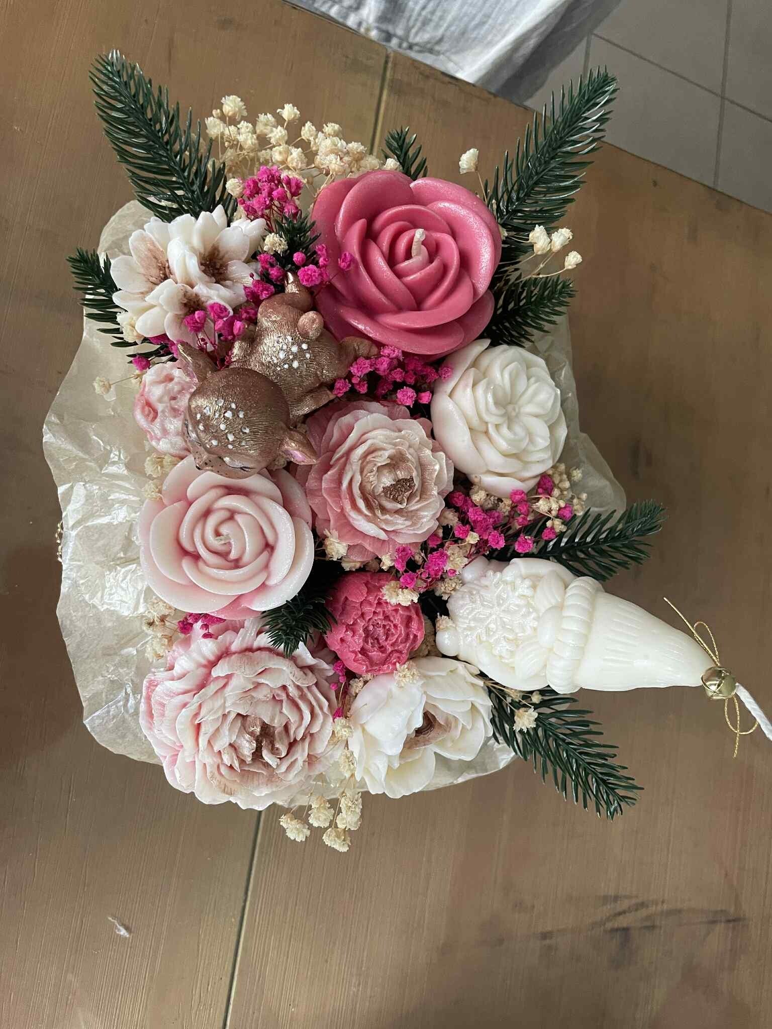 Ce bouquet est parfumé à la rose vanillée et offrira ses senteurs pendant au moins 6 mois. Après les fleurs peuvent être fondues dans le brûle parfum pour ressentir de nouveau le parfum.