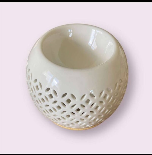 Inspiré de l'ancienne monnaie asiatique devenue un porte-bonheur, le brûle-parfum Qianbi présente un motif symétrique et est fabriqué en céramique finement ajourée, minutieusement travaillée à la main, permettant ainsi à la douce lueur de la bougie de s'échapper et d'apporter une ambiance tamisée et délicieusement parfumée à vos journées et soirées.