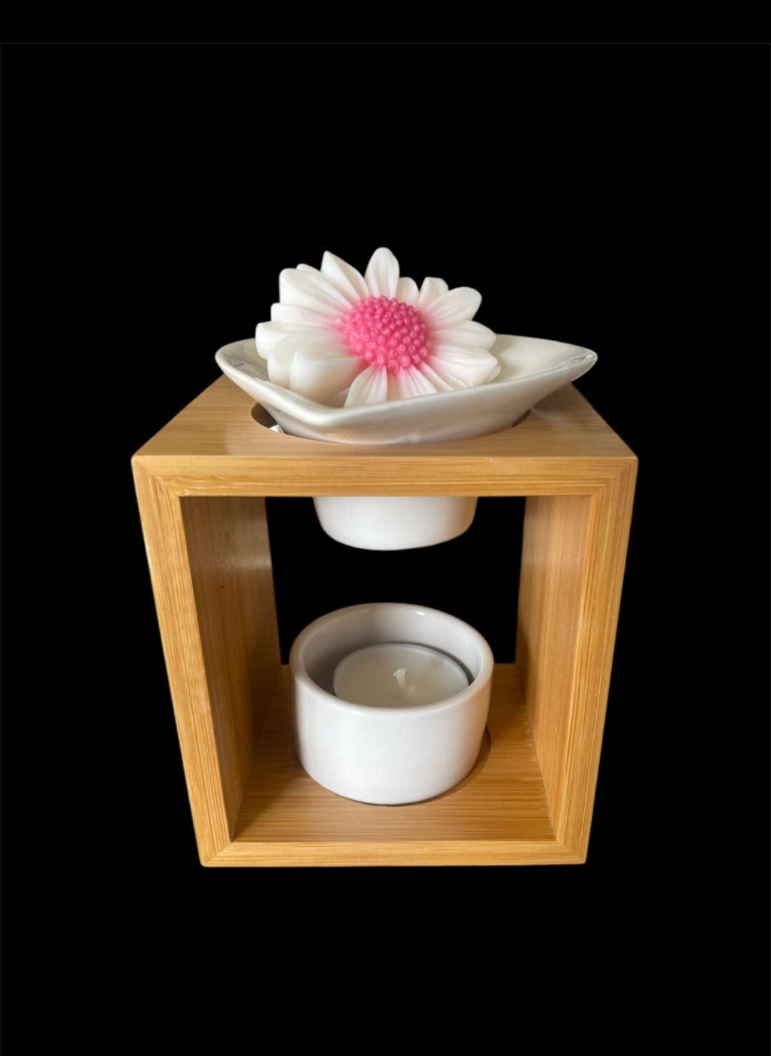 Parfaitement adaptée pour vos solutions parfumées, la coupelle est indépendante du support et peut donc se nettoyer facilement. La structure en bambou apporte beaucoup de cachet à l’ensemble tandis que le support en céramique accueille une bougie chauffe-plat (non fournie).